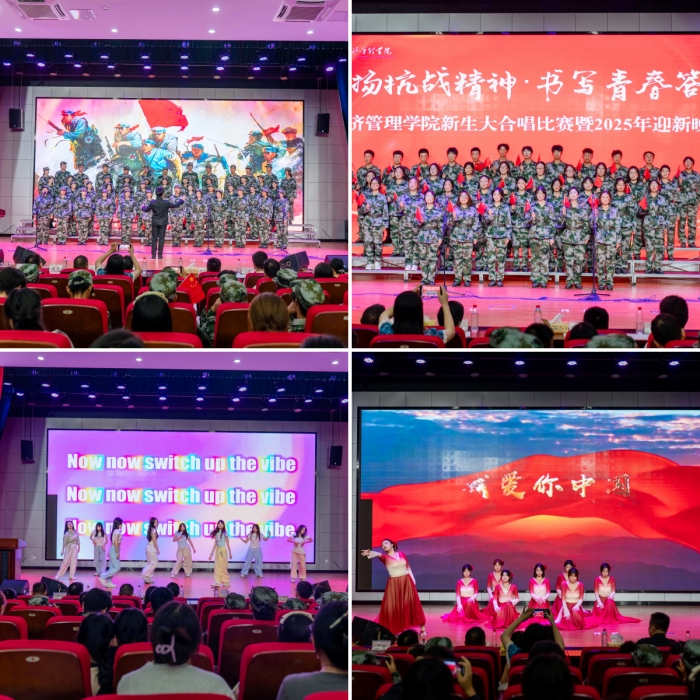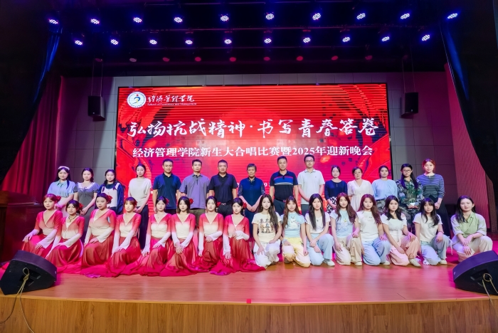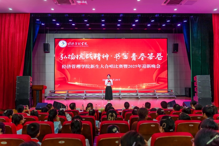9月29日晚,经济管理学院“弘扬抗战精神・书写青春答卷”新生大合唱比赛暨2025年迎新晚会在横江校区报告厅举行。该院党委书记吴敏,党委副书记、院长赵士德,党委副书记、纪委书记郜玉振,党委委员、副院长计东亚,各教研室教师代表,学院团委负责人担任评委,诚邀齐云山中心小学党支部书记、校长胡继红观看晚会。