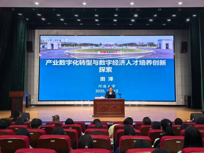 2025年11月12日下午4点,“行知讲坛”在横江教学楼一楼报告厅举行。本次讲座由经济管理学院赵士德院长主持,邀请到河海大学田泽教授作为主讲人,为经济管理学院近300位师生们带来了一场题为“产业数字化转型与数字经济人才培养创新探索”的精彩报告。