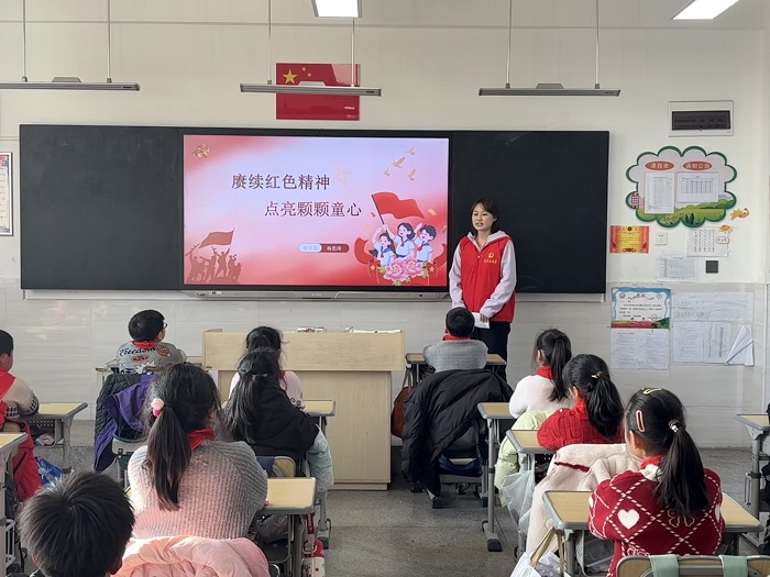 为厚植爱国主义情怀,传承红色基因,12月17日,经济管理学院学生第四党支部组织党员志愿者走进百鸟亭小学柏山校区301班,开展以“赓续红色精神,点亮颗颗童心”为主题的红色宣讲实践活动。