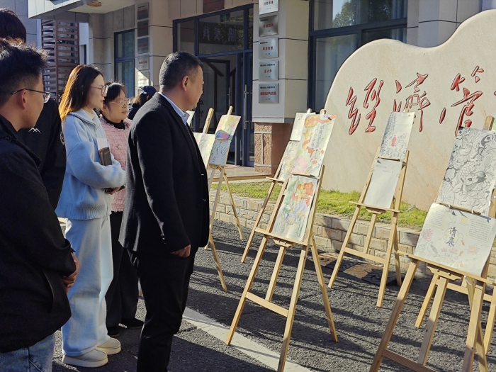 11月26日下午,经济管理学院在横江校区文华楼门口举办“笔绘清风,墨守廉洁”主题书画作品展,集中展示学生书法、绘画类优秀作品。学院党委副书记、纪委书记郜玉振,辅导员及众多学生共同参与本次展览活动。